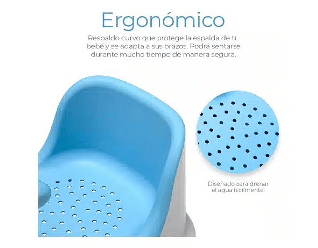 👶 Protección total para tu pequeño Gracias a su diseño envolvente y respaldo alto, tu bebé estará cómodo y protegido desde todos los ángulos. La almohadilla antideslizante y las ventosas de gran adherencia evitan resbalones y caídas, incluso en bañeras mojadas.