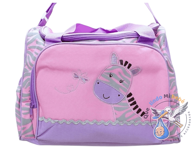 Bolso Maternal Con Cambiador Rosado/Lila Cebra