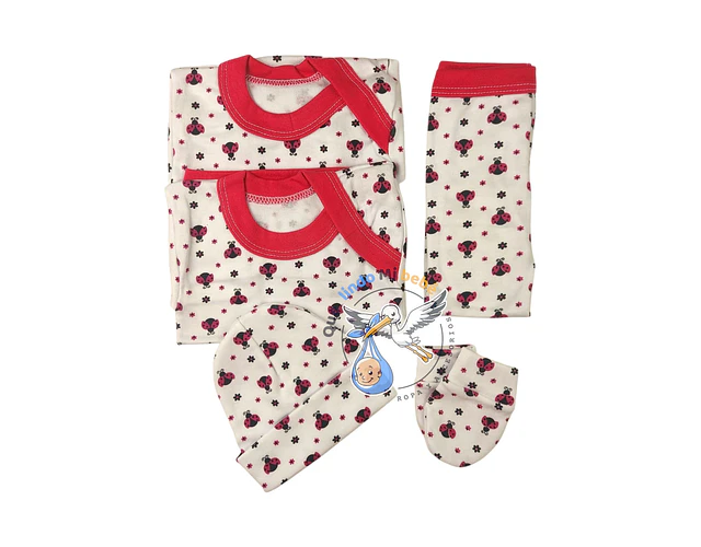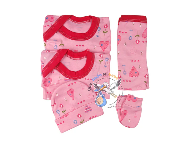 5 piezas esenciales para el primer outfit perfecto: body, camiseta, panty, gorrito moldeador y mitones. Hechos con amor y calidad nacional para cuidar cada centĆmetro de tu bebĆ©.