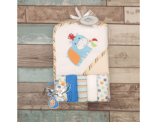 Toalla Capucha + Set 5 Toallitas Hipopótamo