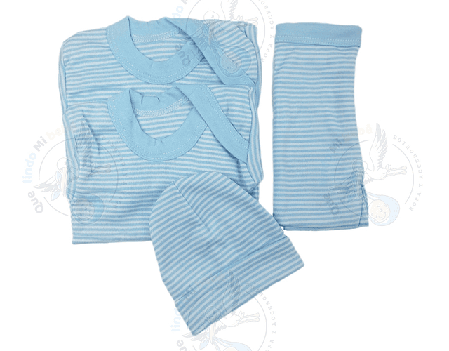 Ajuar 4 Piezas Liso Talla 6/9 Meses Celeste Rayado