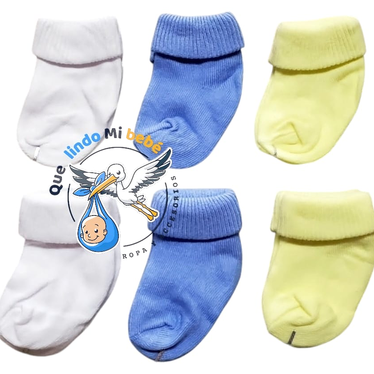 Calcetas Pack de 6 0/3 Meses Celeste/Blanco/Amarillo